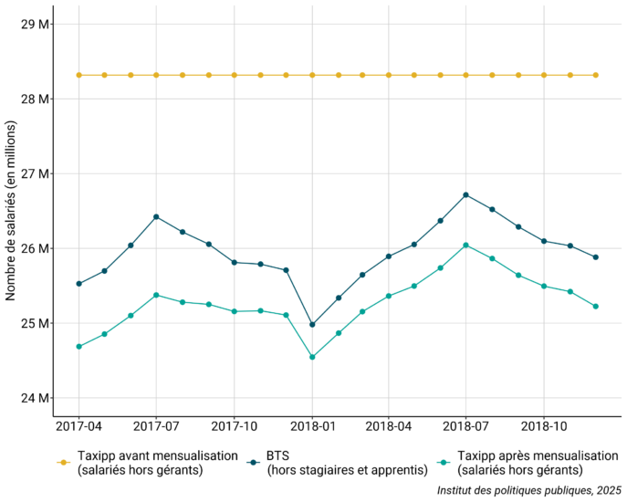 Cet exercice de mensualisation permet de simuler à un rythme mensuel les prestations sociales et reproduire la cyclicité infra-annuelle du marché du travail.